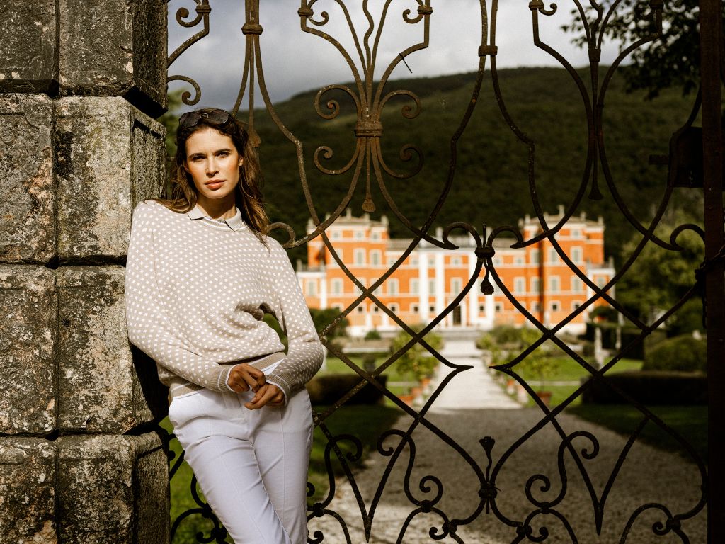 In the images featured throughout the article, Emma Spitz showcases a refined example of what to wear for golf, combining technical performance with Italian style.
